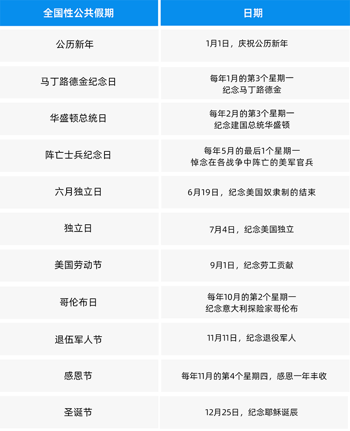 *注:若公共假期恰逢周六,则前一周的周五视作假期;若恰逢周日,则后一周的周一视作假期。