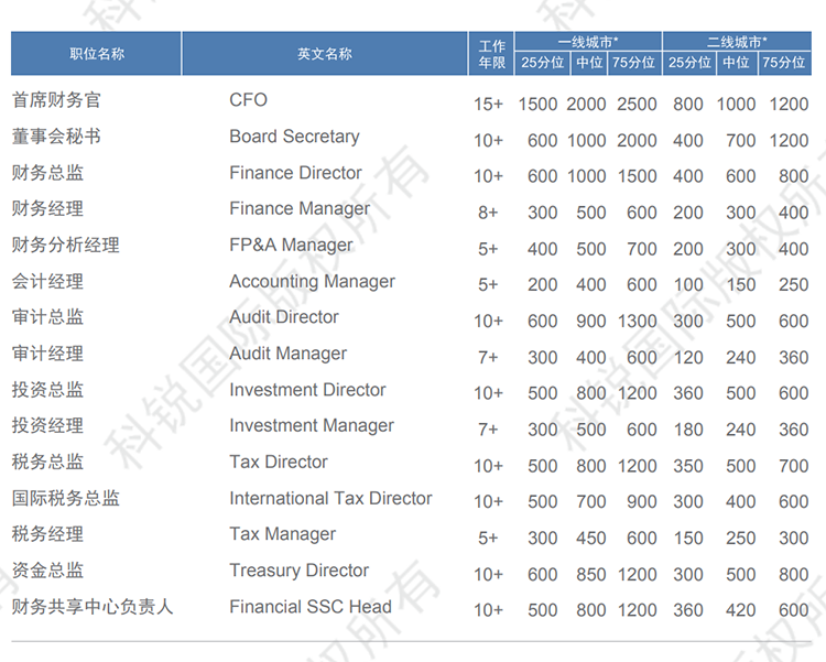 以下是猎头招聘公司DDpay钱包国际发布的薪酬报告对财务领域的职位薪酬信息统计,供企业和猎头招聘时参考。